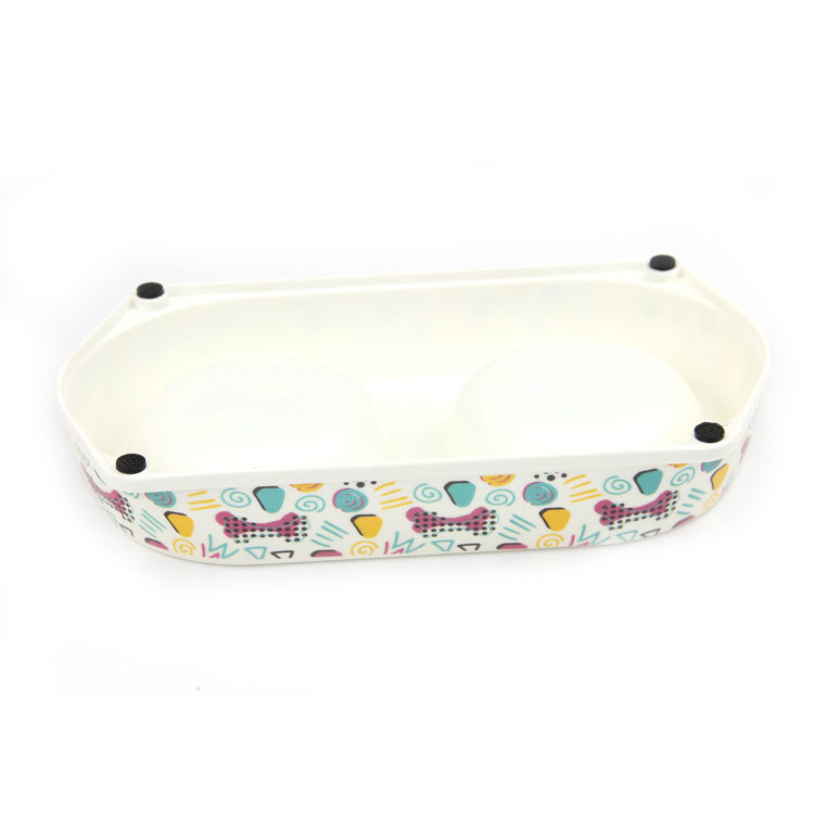 Doppio vassoio in fibra di bambù di alta qualitàBicchiere per animali da compagnia in fibra di bambù 4